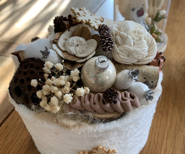 fleurs séchées et décorations gourmandes factices